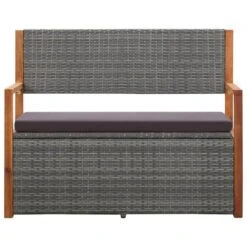Banc De Rangement 110 Cm Résine Tressée Et Bois D’acacia Gris