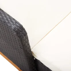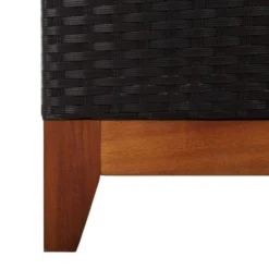 Matériau : résine tressée, bois d’acacia massif avec finition à l’huile, acier enduit de poudre
